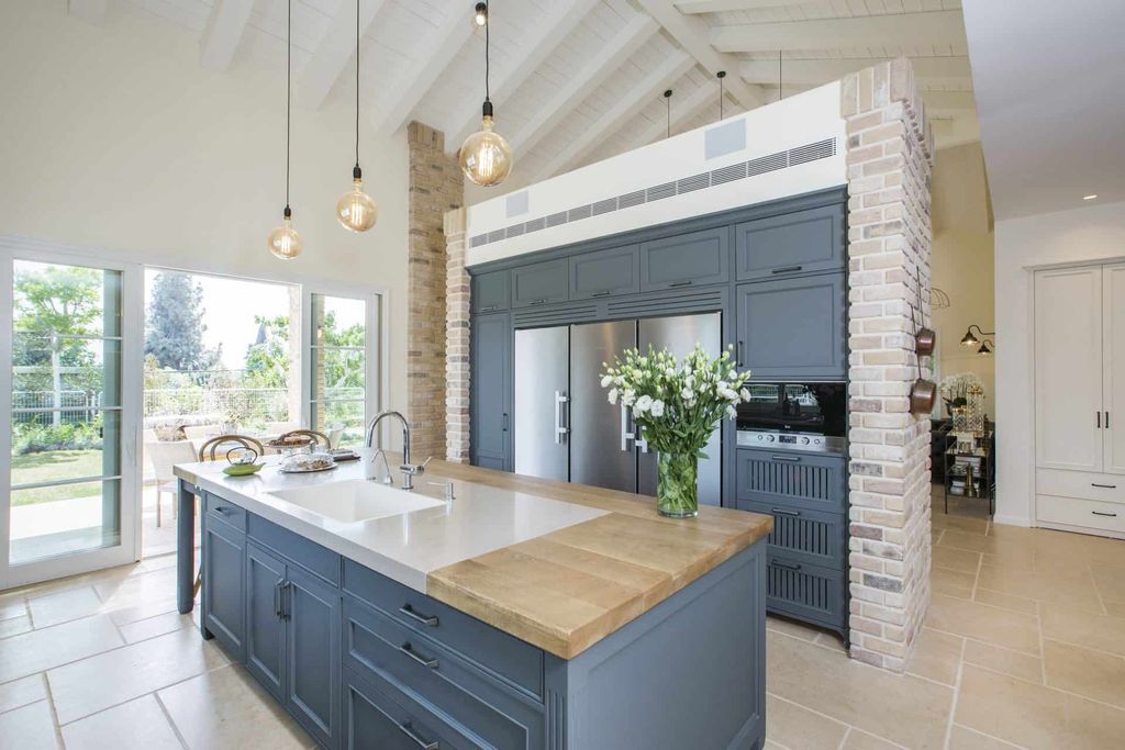 כחול מזוהה במחקר עם רוגע והאטת קצב, אך במטבח חשוב להשתמש בו בזהירות. מחקרים מצביעים על כך שכחול עשוי להפחית תיאבון, ולכן אינו מתאים כצבע מרכזי. עם זאת, לצד שמנת, גוונים מעושנים של כחול או כחול־אפור יכולים להוסיף עומק ואלגנטיות – למשל באי מרכזי, בנישות או בקיר משני – מבלי לפגוע בתחושת החמימות הכללית.